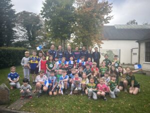 Members of the Intermediate Skryne Gaelic Football team visited Rathfeigh School with the cup after their great win against St. Ultans.
